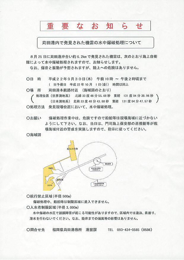 | 苅田港本港3号物揚場(巡視艇専用桟橋)付近岸壁、九州地方整備局苅田港湾事務所桟橋及び同地先海域 |